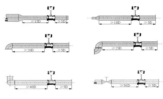 渦街流量計(jì)安裝示意圖: